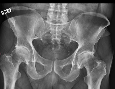 The doctor didn’t need long. One look at the X-ray and he was amazed I could walk… let alone do any of the stupid things I’d been doing. I wasn’t just out of oil. The bearings were gone, the races were chewed, and the whole assembly was grinding itself to death. Or for you tech types: classic bone-on-bone contact, a femoral head that wasn’t even round anymore, and it was grinding straight into the acetabulum.