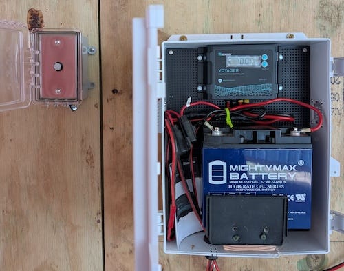 For the panel, I used an ACOPOWER 30-watt monocrystalline solar panel. The load is low enough that 30 watts is more than plenty for this system.