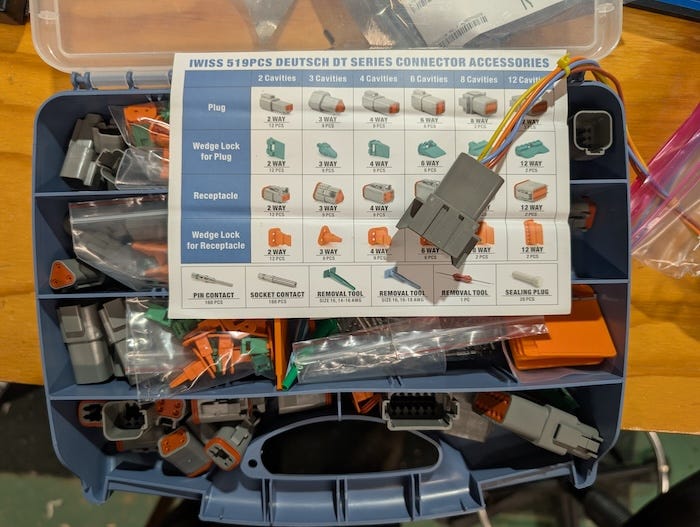 I’ve used DT connectors in my Raspberry Pi Car Radio Project and around the farm, where weather and vibration are just part of the deal. These days, getting started is easy. You can easily find starter kits on Amazon with housings, pins, seals, and a basic crimper all in one box. It’s enough to learn the system and build real harnesses without hunting part numbers.