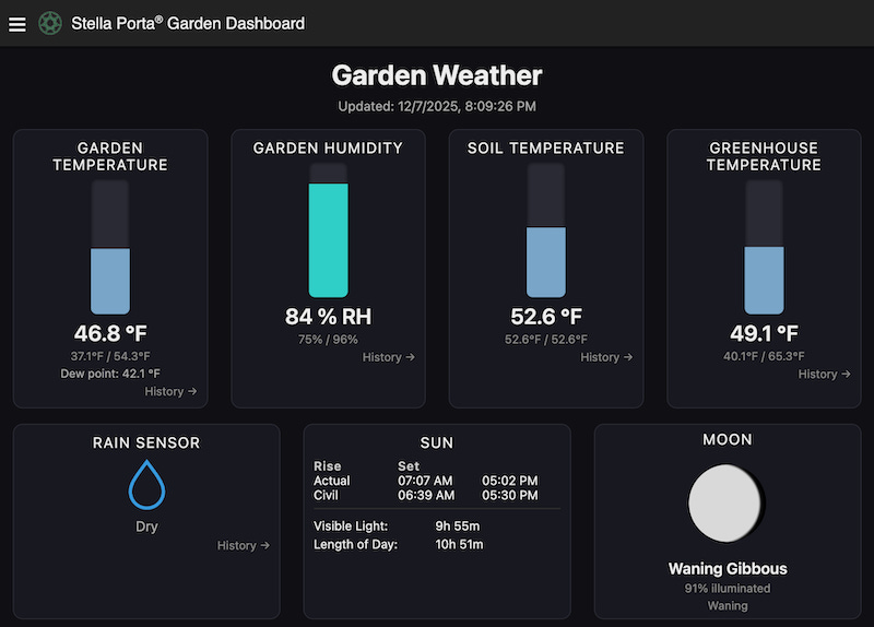 OpenSprinkler would probably do for most people, but I wanted to do a few more things. In particular, I am very interested in tracking the temperature and humidity in the garden, greenhouse, and the ground temperature for our farm.