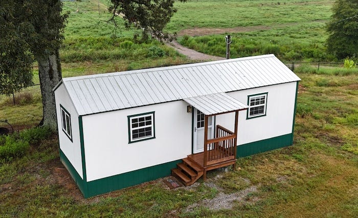 As we settled into our new home, we quickly realized we needed a place for guests and visitors. My goal was to not only give visitors some privacy but also not have them bothered by our dog(s) who patrol the property. At first, I considered converting one of the shipping containers into a tiny house. The Container Guy on YouTube has a lot of great videos on how to do this properly. However, after pricing out all the options, I came up with a better idea. I found a repossessed 12 x 32 foot Frontier Shed for a great price.