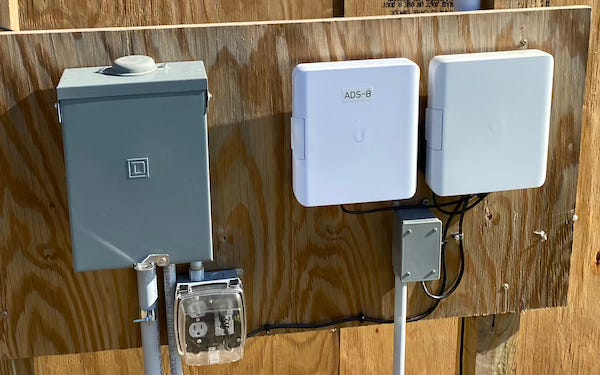 After doing some analysis using the tools at heywhatsthat.com, I determined that one of our farm’s outbuildings, the greenhouse and soon-to-be cooler/wash-pack station, was a perfect location for an ADS-B antenna. Fortunately, I had previously installed a hardwired internet connection to the greenhouse to manage the crop irrigation system. Since I used a USW-Flex PoE switch, it would be easy to access both power and our local network with a single Cat-5 cable.
